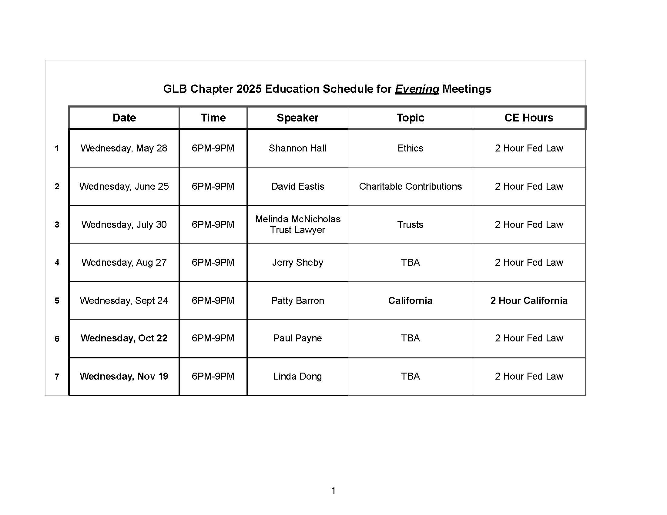 Miscellaneous InformationWe hope to see many new faces at our events this year! Don’t be shy… pick your event, call in your reservation, and come network with other tax pros in your area!